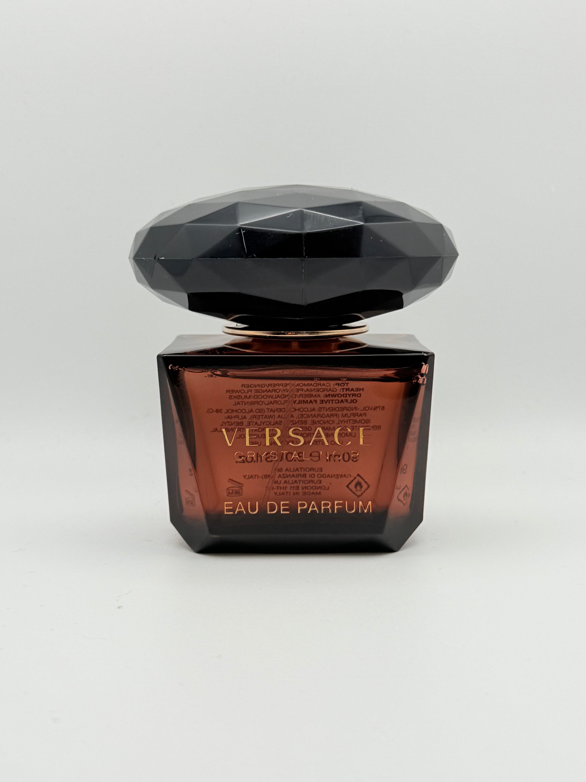 Versace Crystal Noir is a mysterious, elegant fragrance with a creamy floral heart and a warm, spicy base. It opens with fresh ginger and pepper, then softens into rich white florals like gardenia and orange blossom. The dry-down is smooth and slightly sweet, with sandalwood and amber giving it depth and lasting power. A seductive scent perfect for nights out and cooler weather.